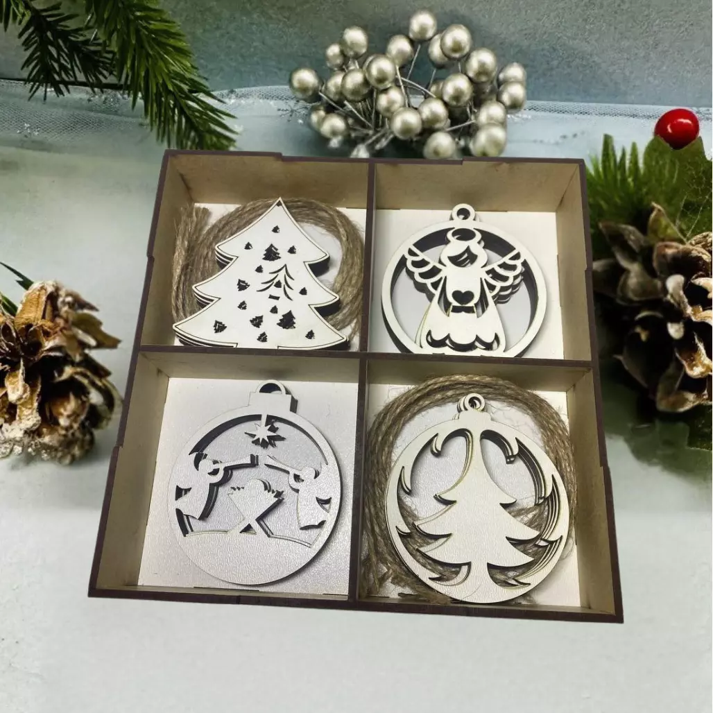 Набор деревянных елочных игрушек "Happy New Year" станет стильным и