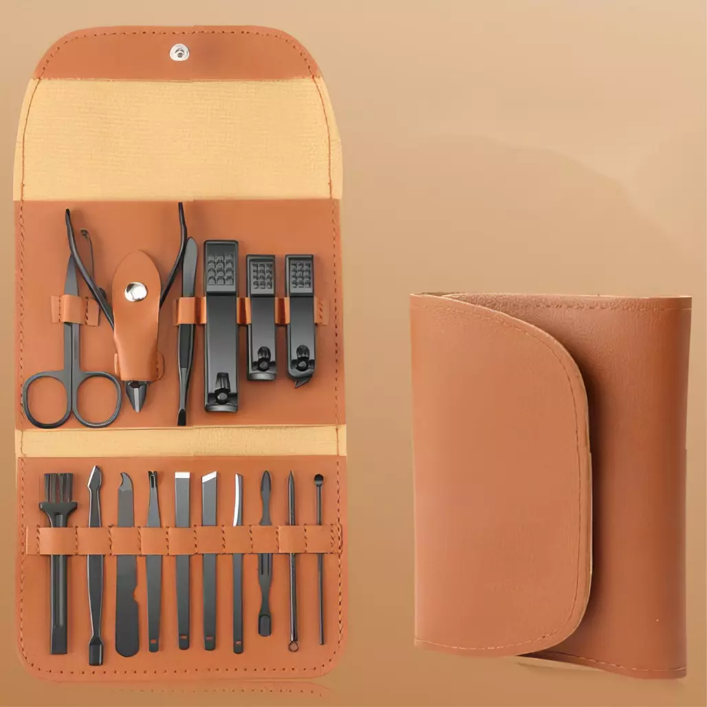 Включает 16 инструментов для маникюра и педикюра