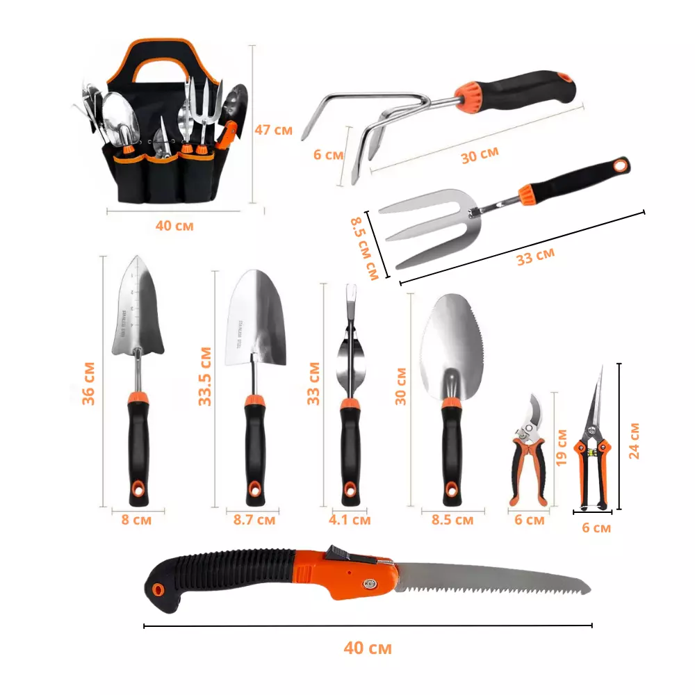 решение для ухода за садом и огородом. В комплект входит 9 ручных