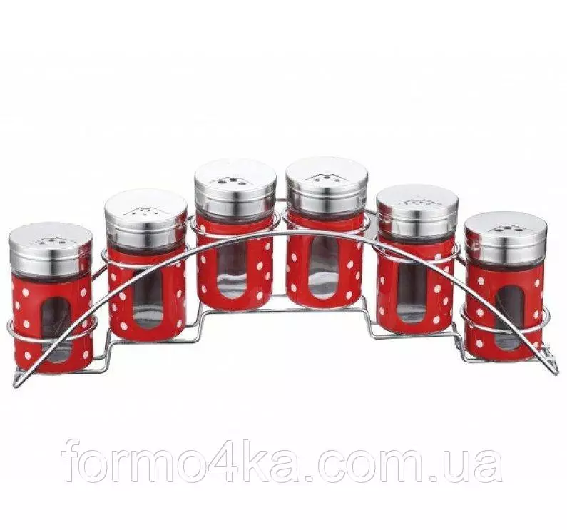 Набор для специй состоит из 7 предметов: 6 емкостей и подставки из