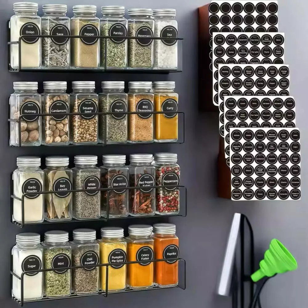 Набор банок для специй из 24 стеклянных емкостей с 4 металлическими