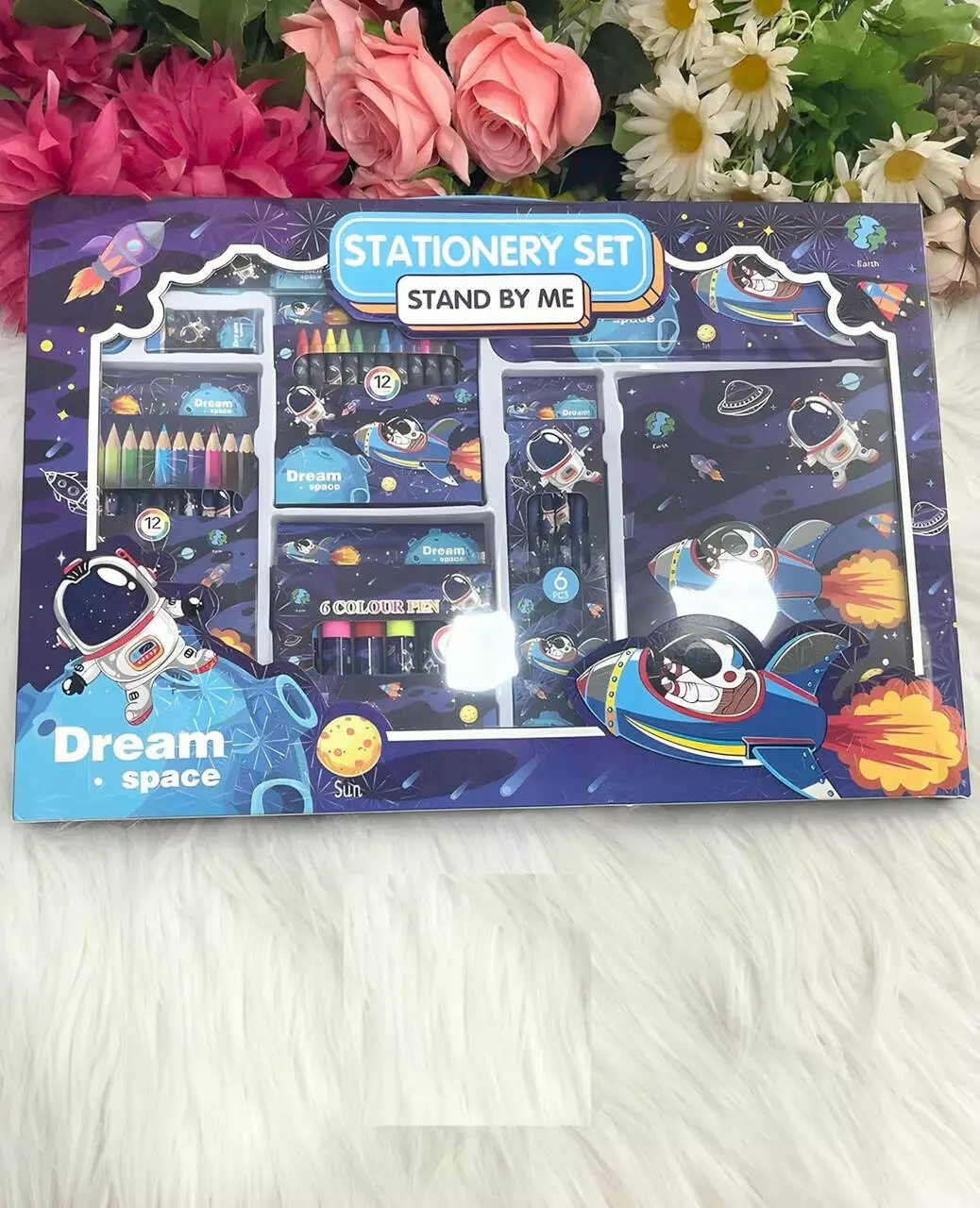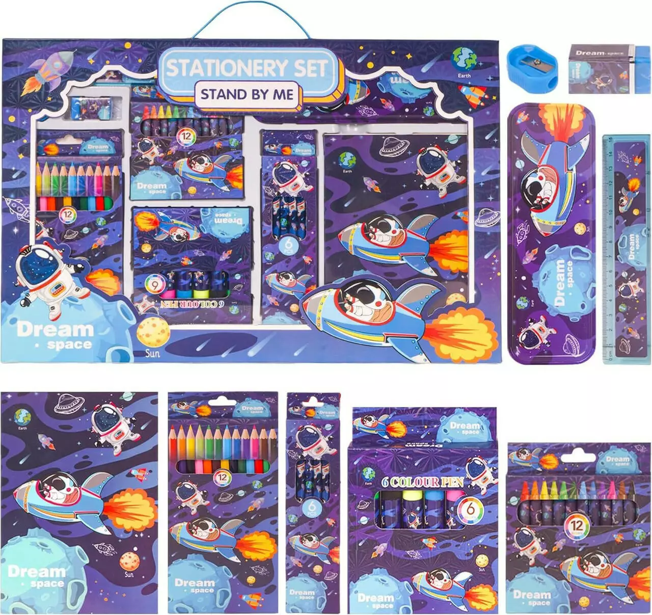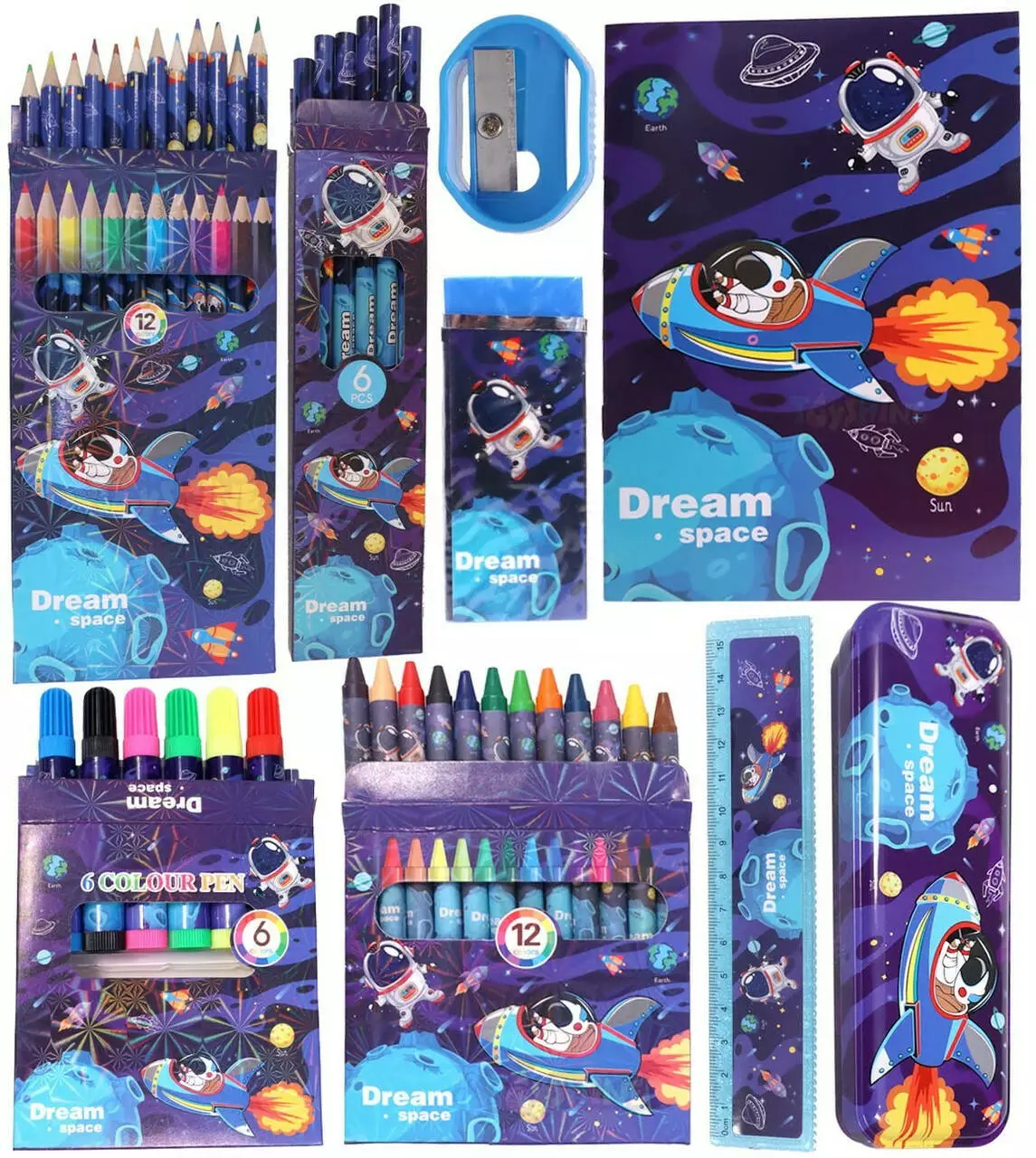 элементы украшены тематикой космоса. Комплект идеально подходит для