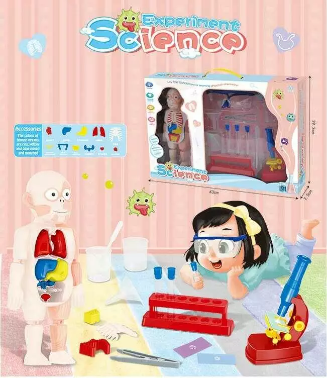 Набор доктора W 604 (24) свет, кукла-человек, органы, 14 аксессуаров, микроскоп, пробирки, защитные очки, в коробке