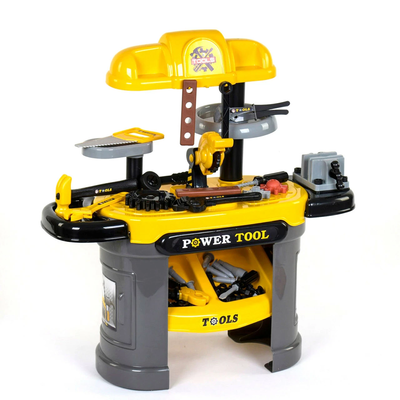 зажим, снизу два вместительных контейнера для инструментов, а