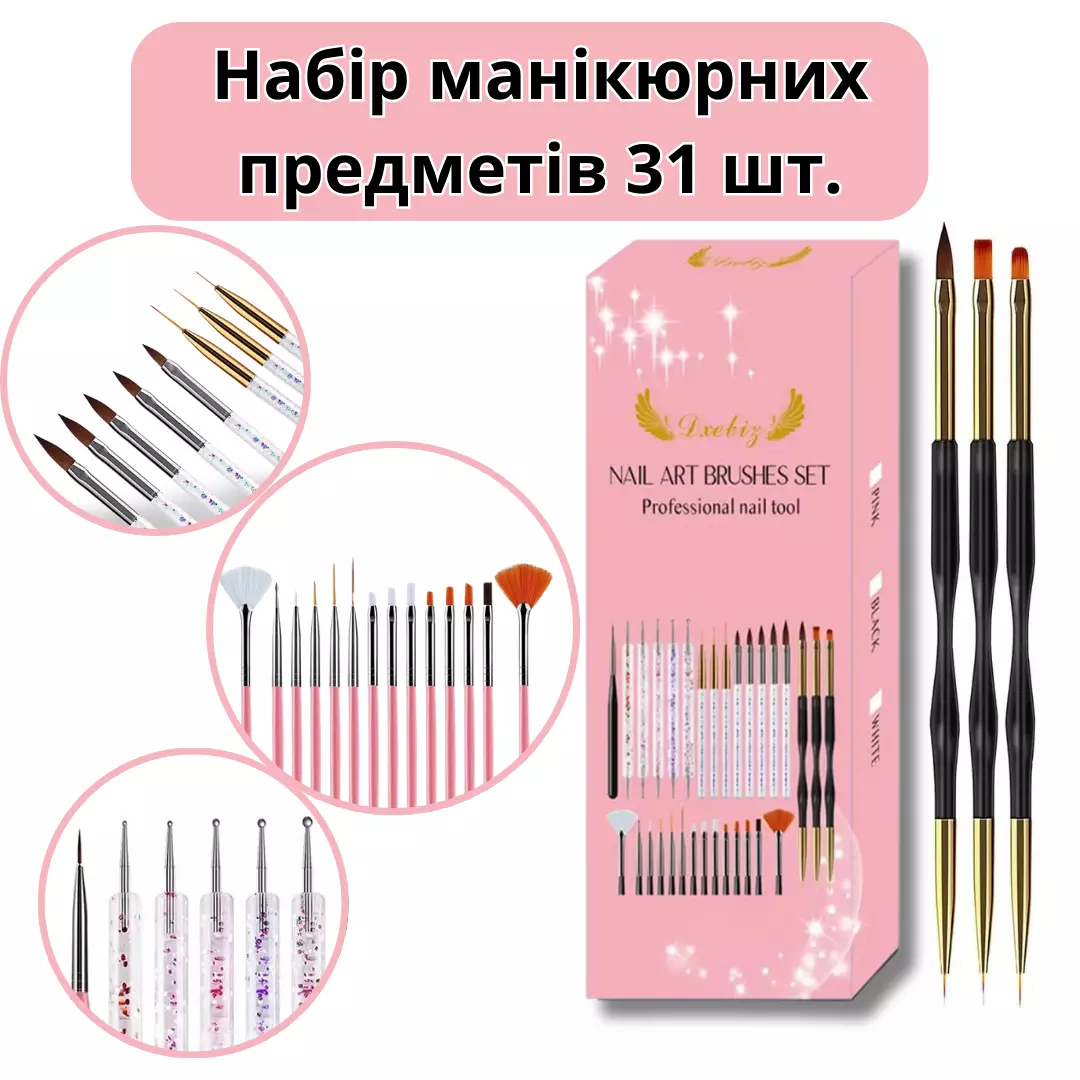 профессионалов и любителей нейл-арта. В набор входит 31 инструмент,