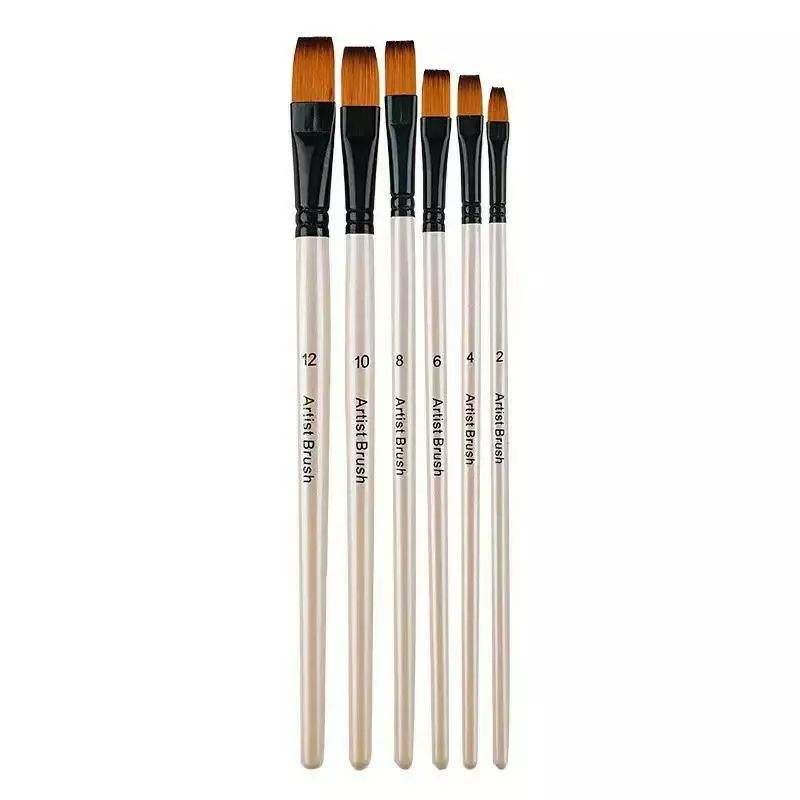 Набор кистей для рисования с нейлоновым ворсом и деревянной ручкой