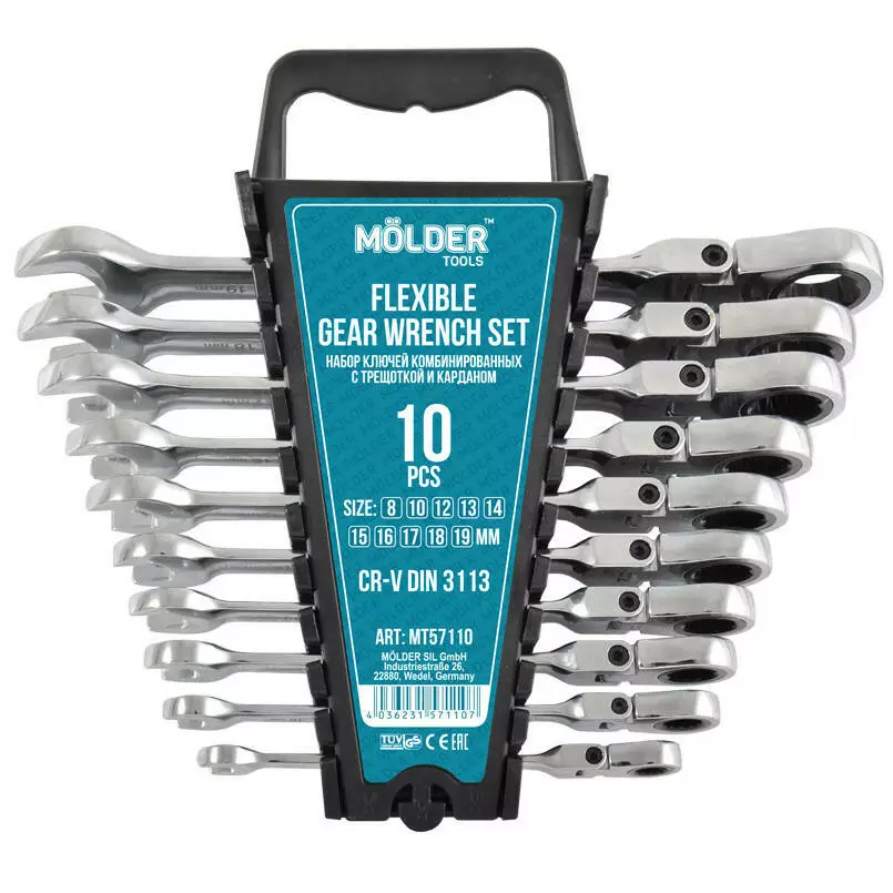 Набор комбинированных ключей MOLDER с карданом CR-V 8-19 мм 10 шт (MT57110)
