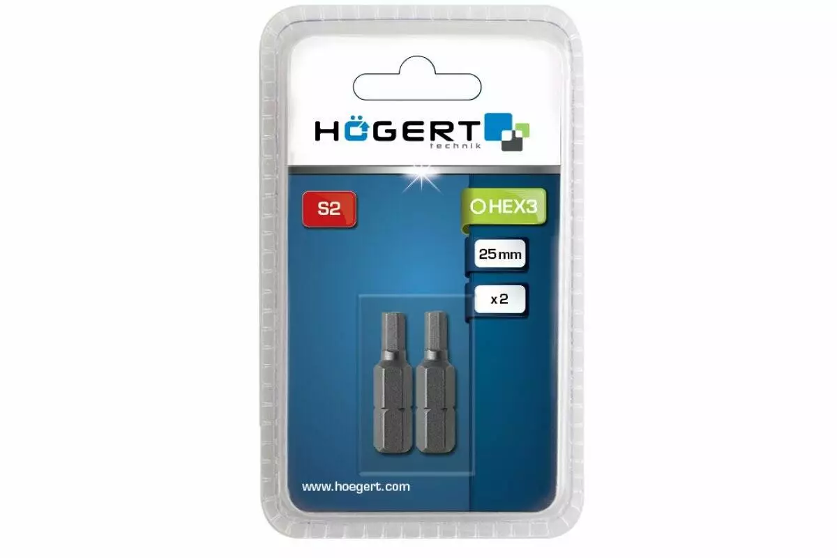 <p>Набор коротких бит HEX 4мм 25мм 2 штуки Hogert (HT1S344)