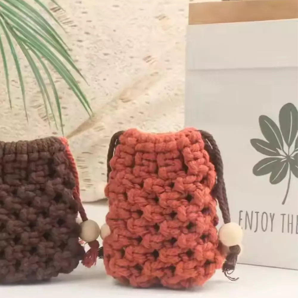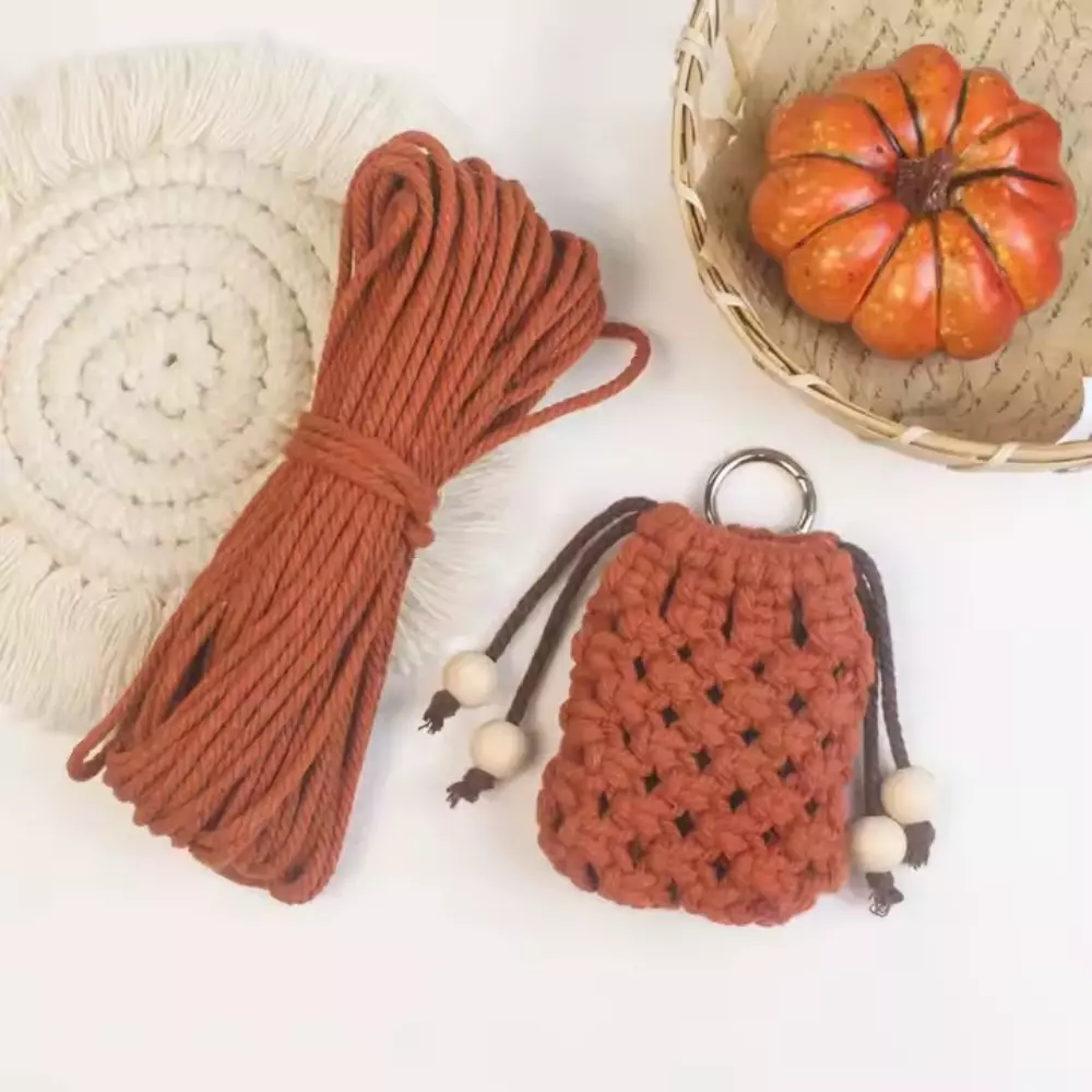 • Материалы: хлопковые оранжевые нити, коричневая нить для затяжки,