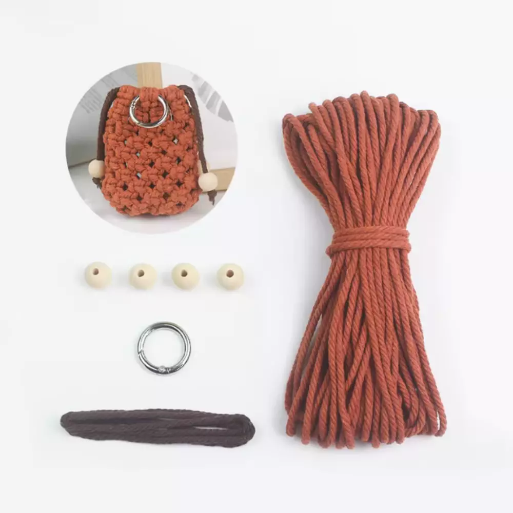 В набор входят оранжевые хлопковые вязаные нити, коричневая нить