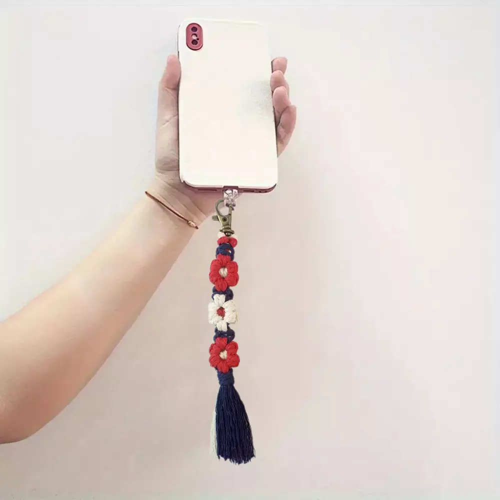 макраме, включает три цветка, сплетённых из хлопковых шнуров в