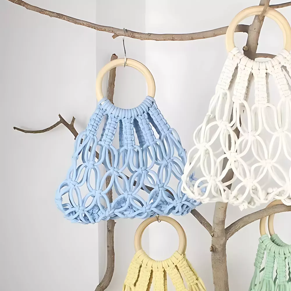 сплести ажурную сумку в технике макраме — лёгкую, вместительную и
