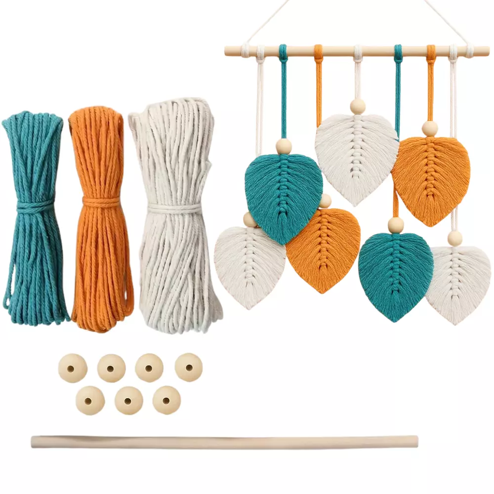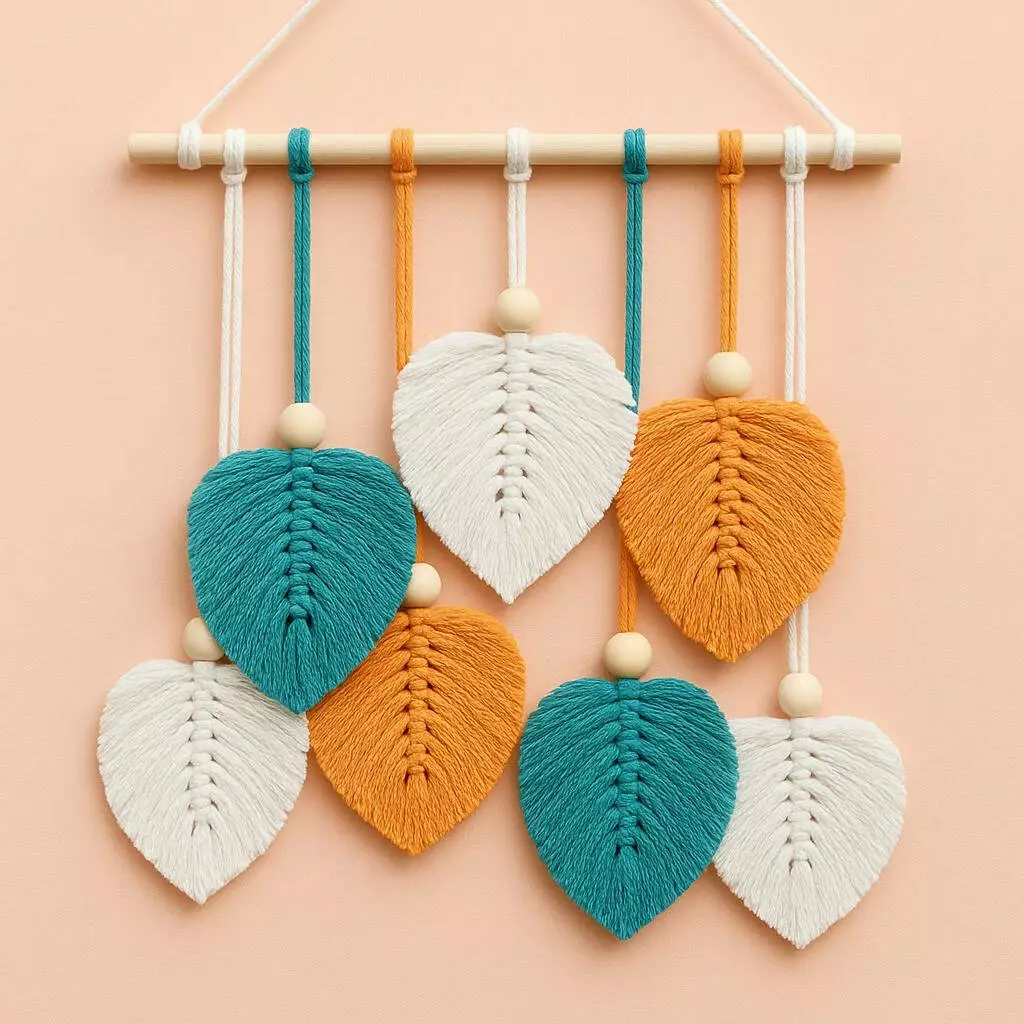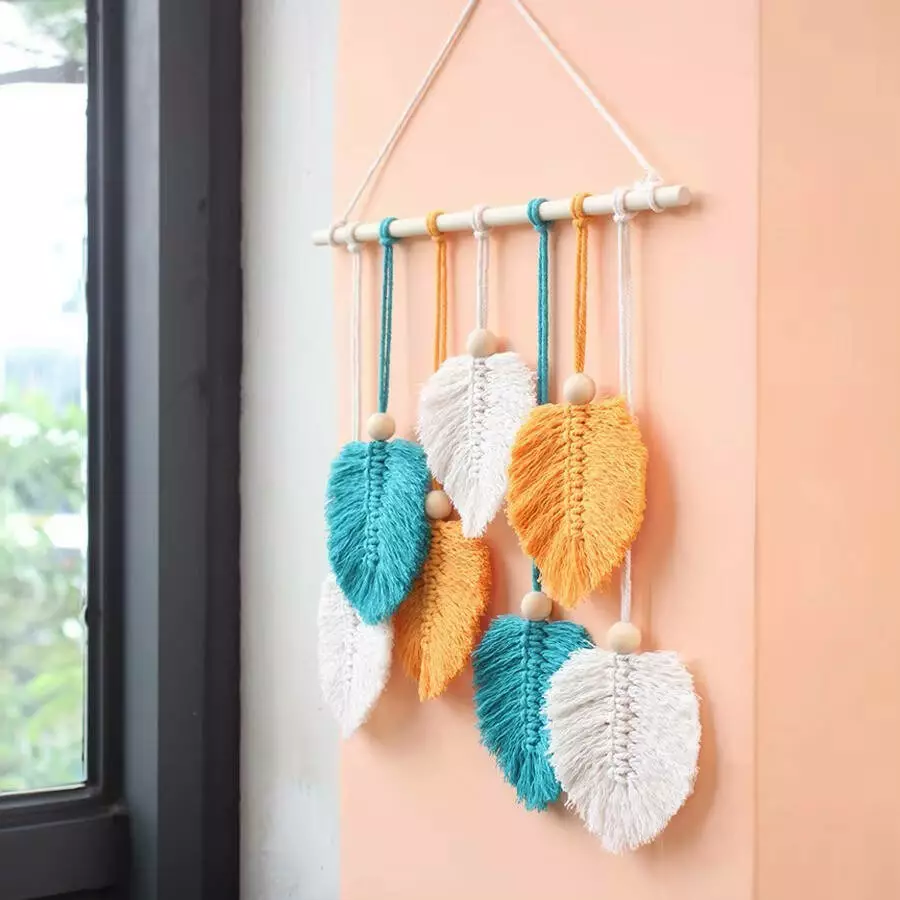 набором макраме! Готовое изделие — гобелен "Листья", выполненный в