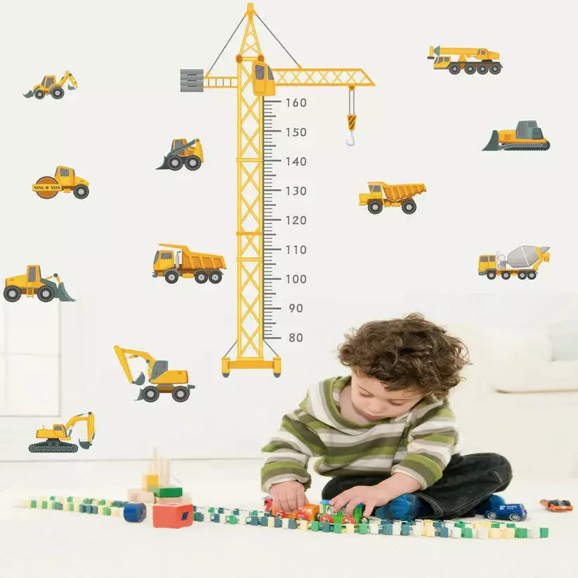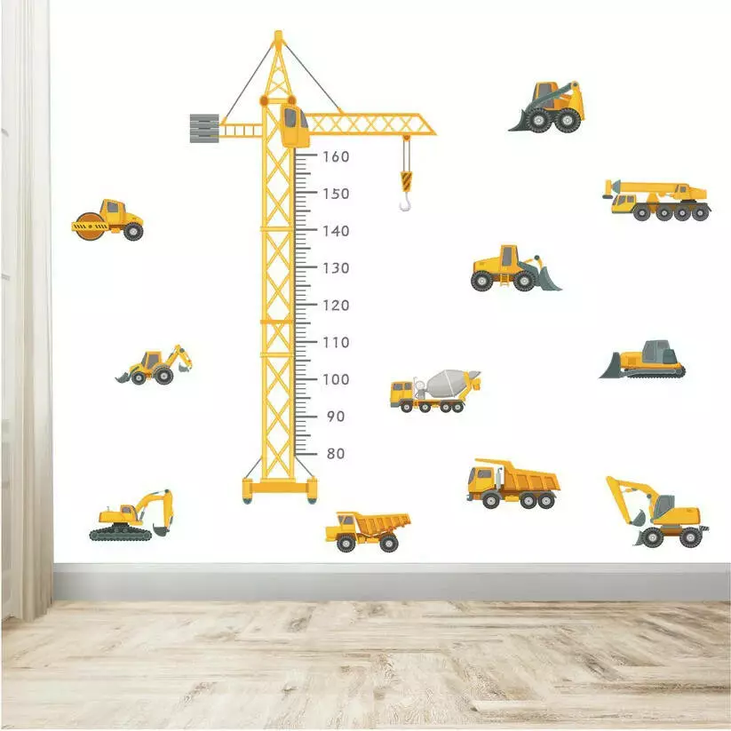 комнате с набором виниловых наклеек "Строительная техника".