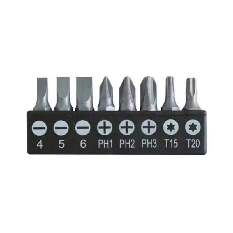 <li>8 сменных бит в комплекте: PH, SL, Torx</li>