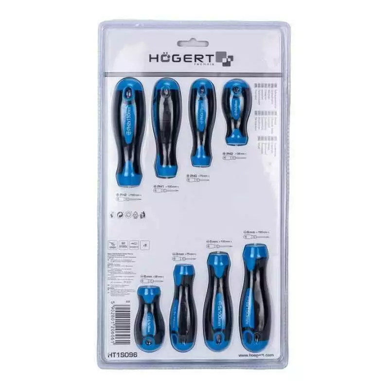 <p><strong>Набор отверток Hogert 8 штук сталь S2 с