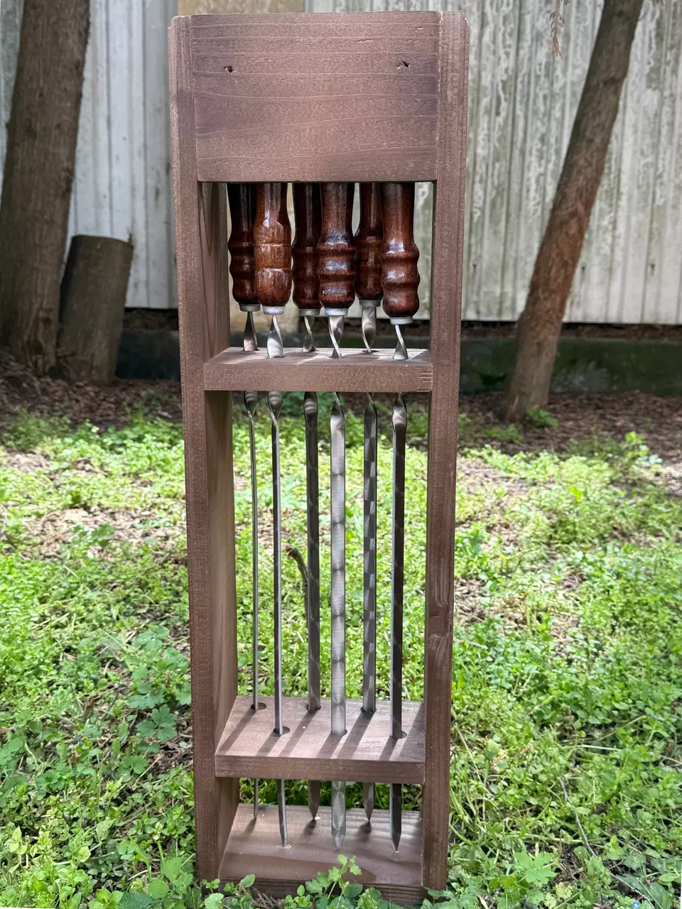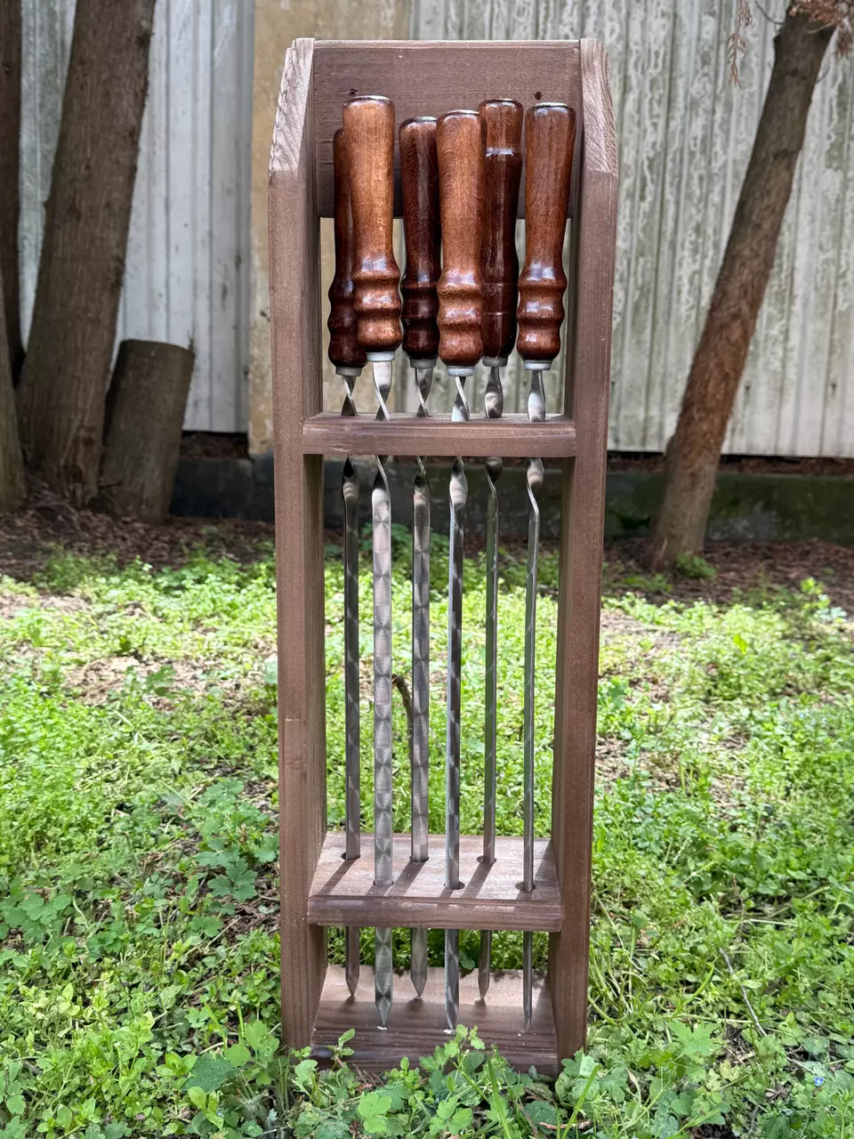 шампуров из прочной нержавеющей стали с деревянными ручками. Длина