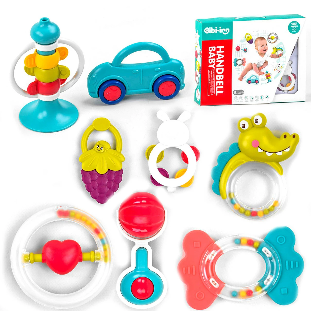 подарочной упаковке Вы найдете 8 погремушек с подвижными