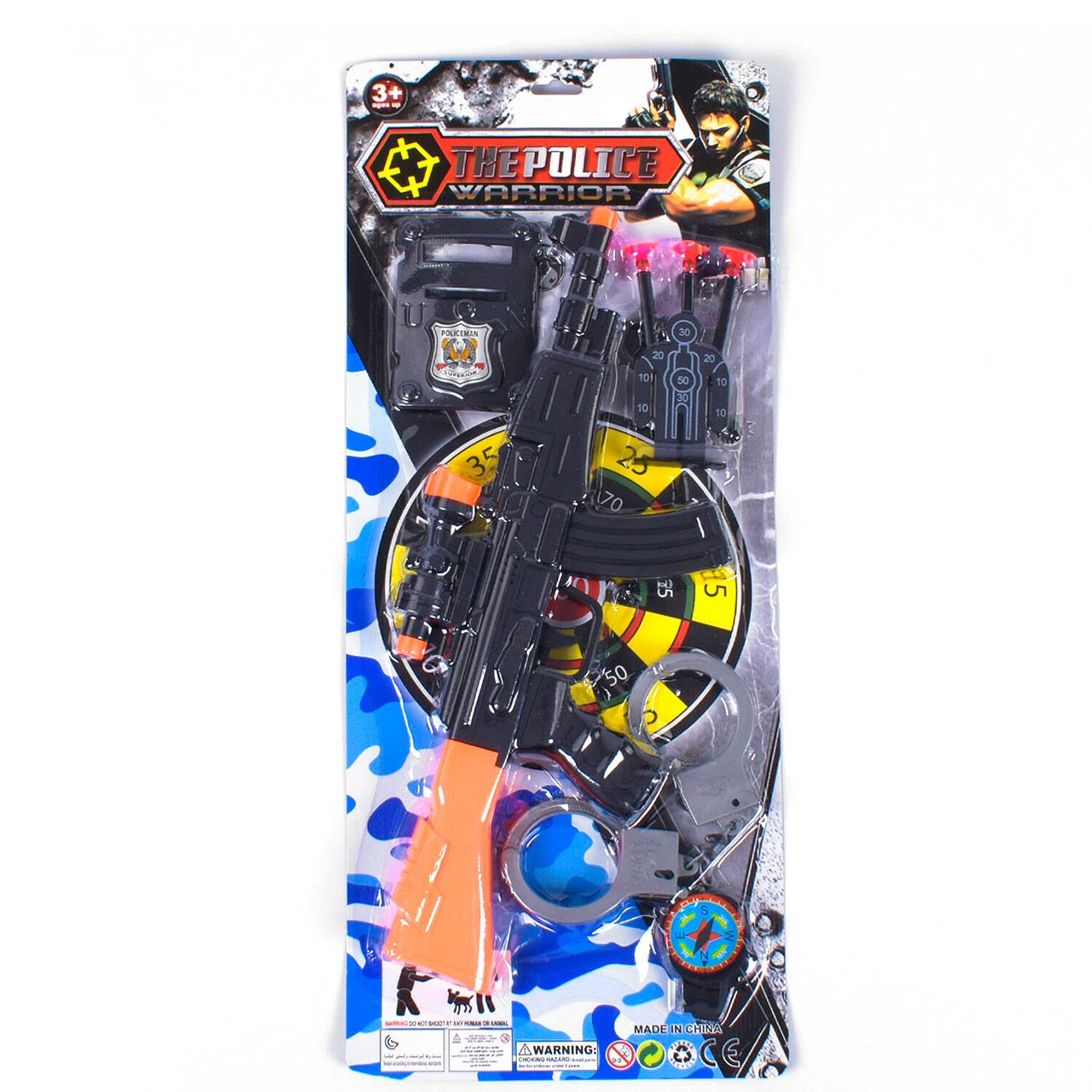 автомат с патронами на присосках, наручники, компас, стоячую мишень