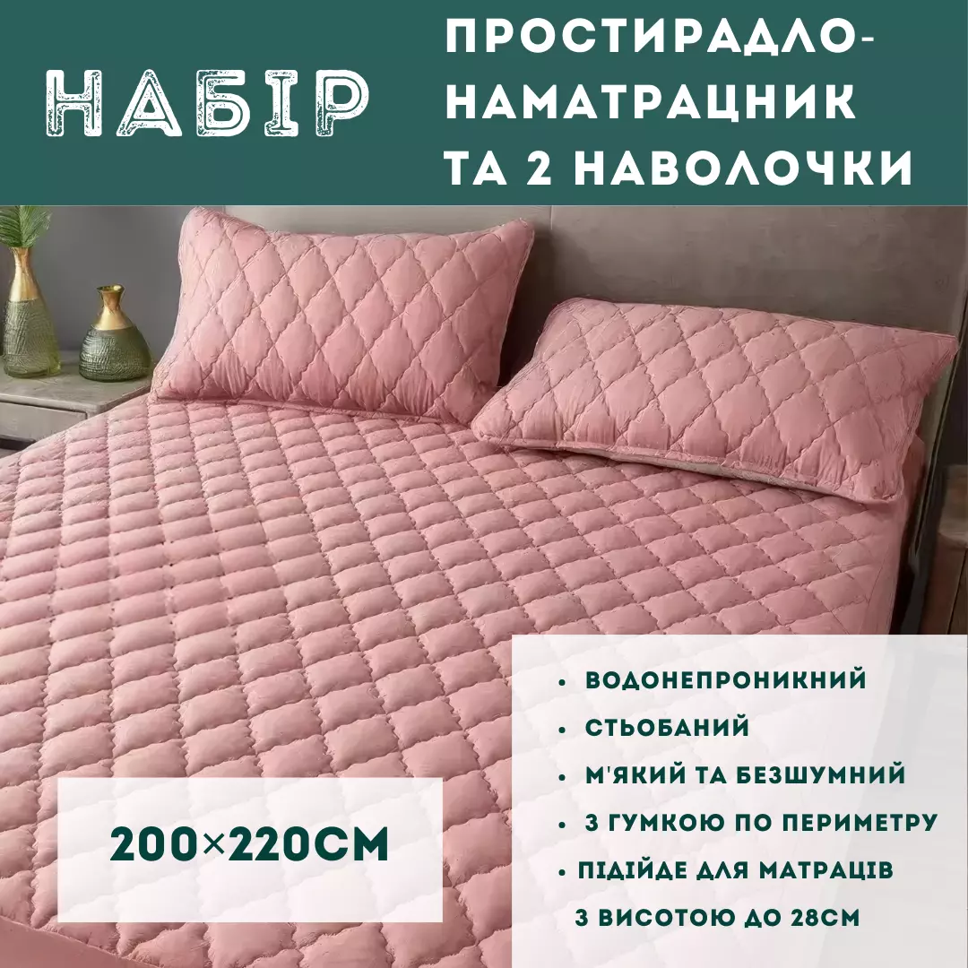 Водонепроницаемая простыня на резинке 200×220см и две наволочки