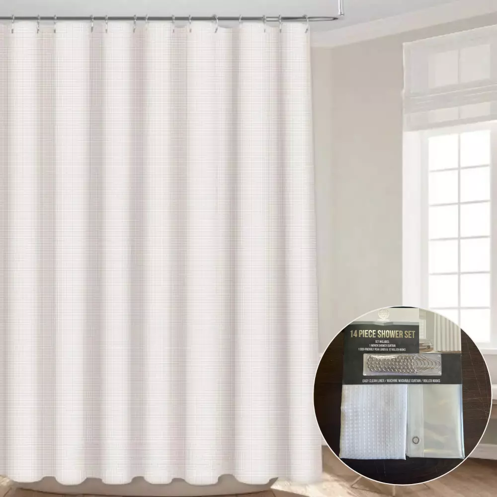 Набор шторка для ванной и душа с подкладкой 178x183 см, шторка для