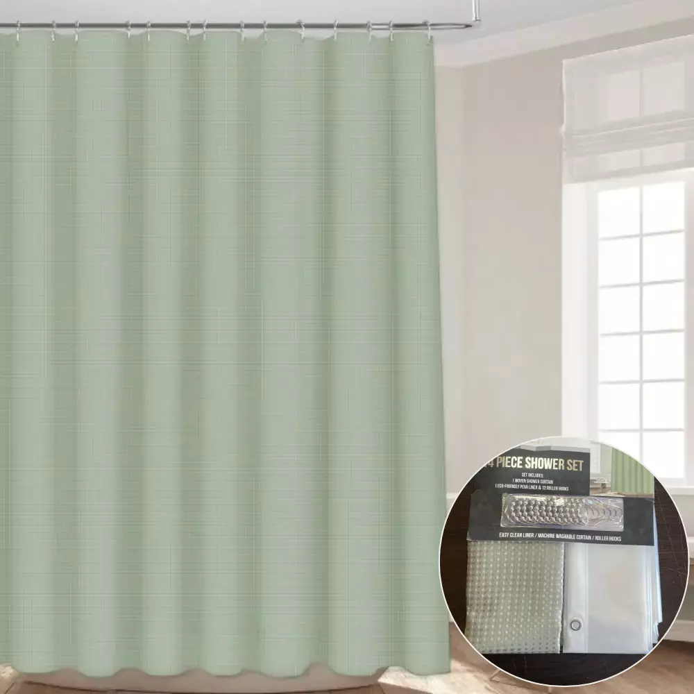 Набор шторка для ванной и душа с подкладкой 178x183 см, шторка для
