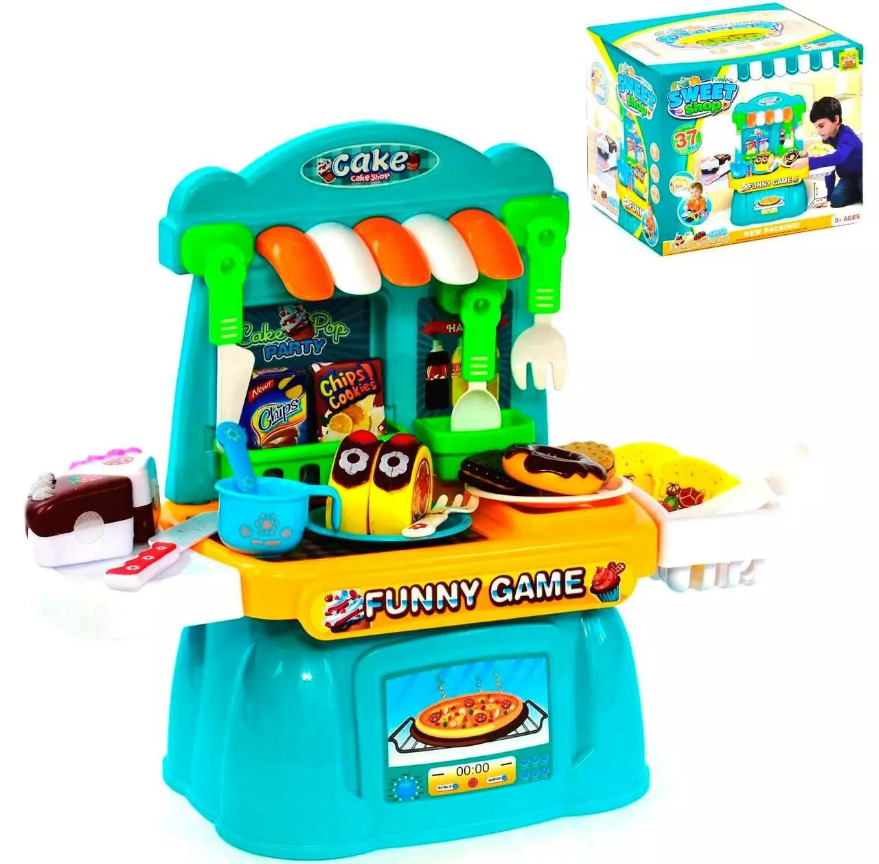 элементов. Увлекательная игра с набором посуды и сладостей на
