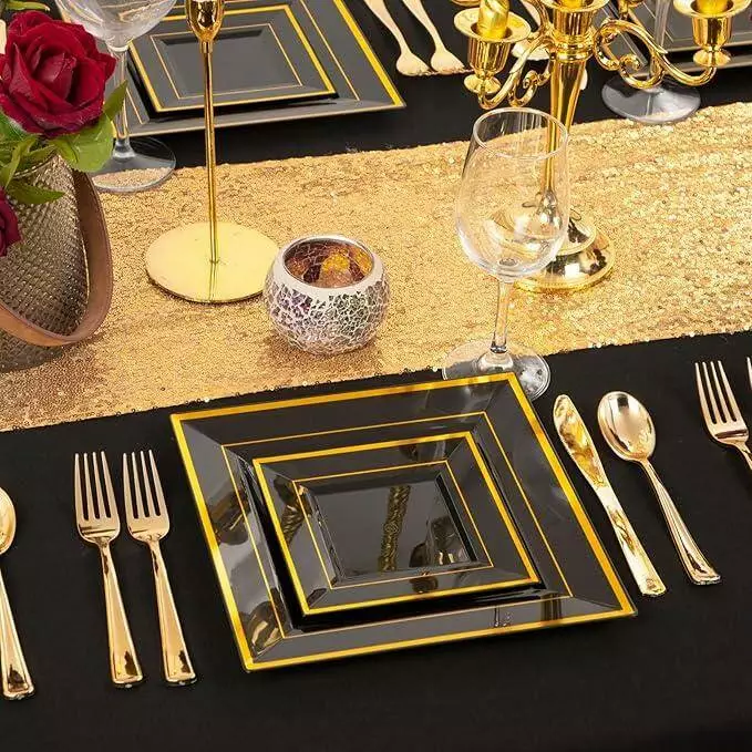 Этот стильный набор пластиковых тарелок станет идеальным решением