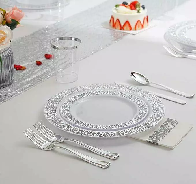 Этот стильный набор пластиковых тарелок идеально подходит для