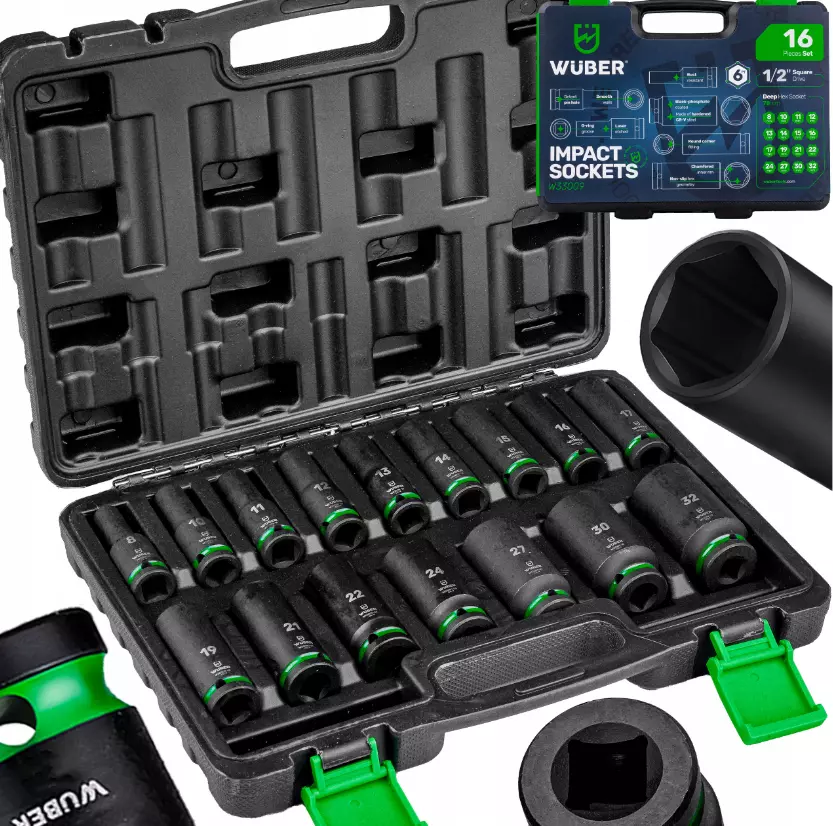 ✅ Полный набор торцевых головок ► 16 шестигранных торцевых головок с гнездами 1/2» для большинства работ в мастерской
