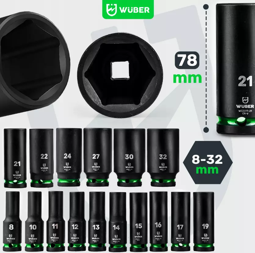 ✅ Длинные и глубокие ► 16 длинных торцевых головок (78 мм) размером от 8 мм до 32 мм, идеально подходящих как для стандартных, так и для более сложных работ