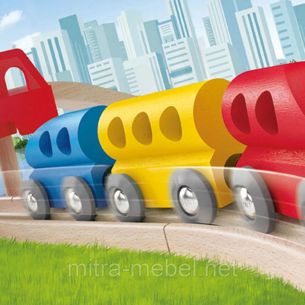 Вагончики скрепляются между собою магнитиками и весело следуют