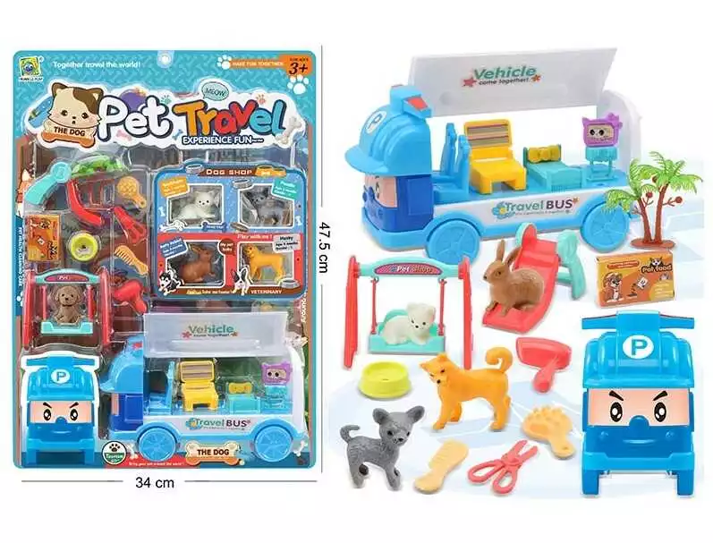Набір тварин 666-57 (36/2) "Весела подорож", 4 улюбленця, трейлер, аксесуари, на листі