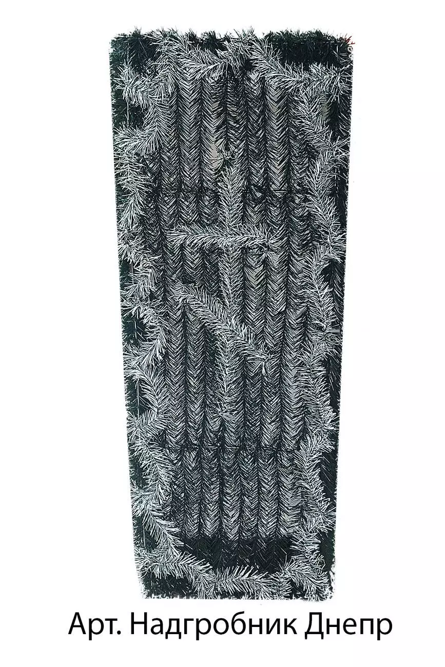 Надгробок зі штучної хвої зашитий по середині з хрестом з хвої, розмір 130*53*40 см.