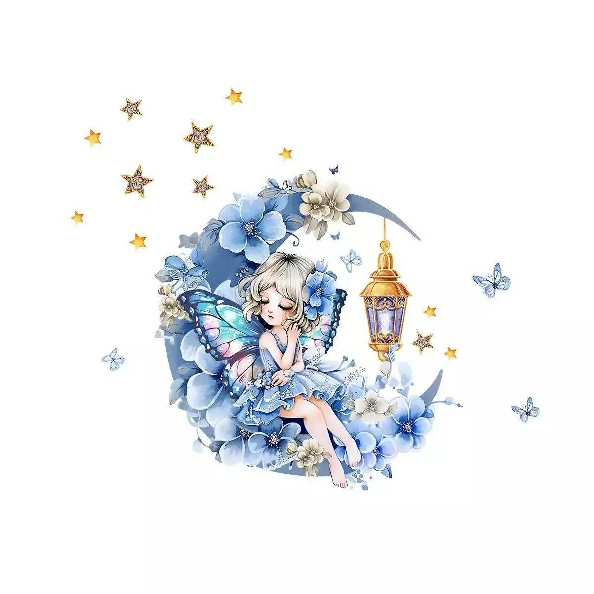 Дизайн: Фея-метелик на квітковому місяці з ліхтариком.