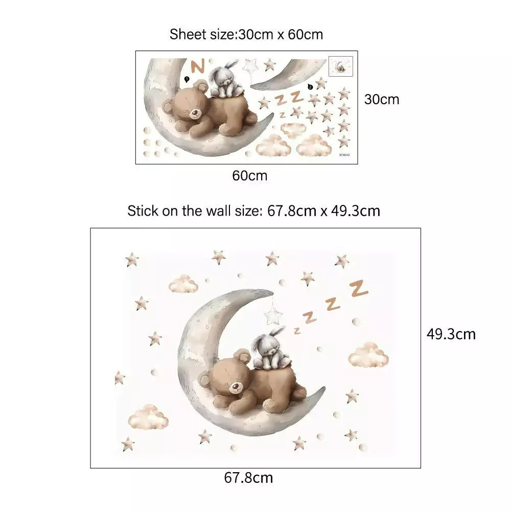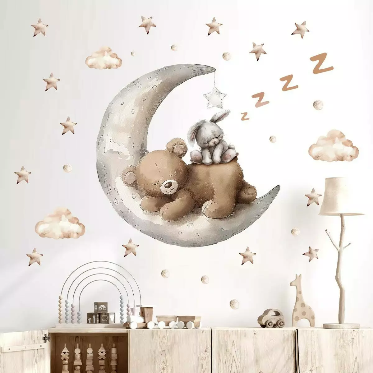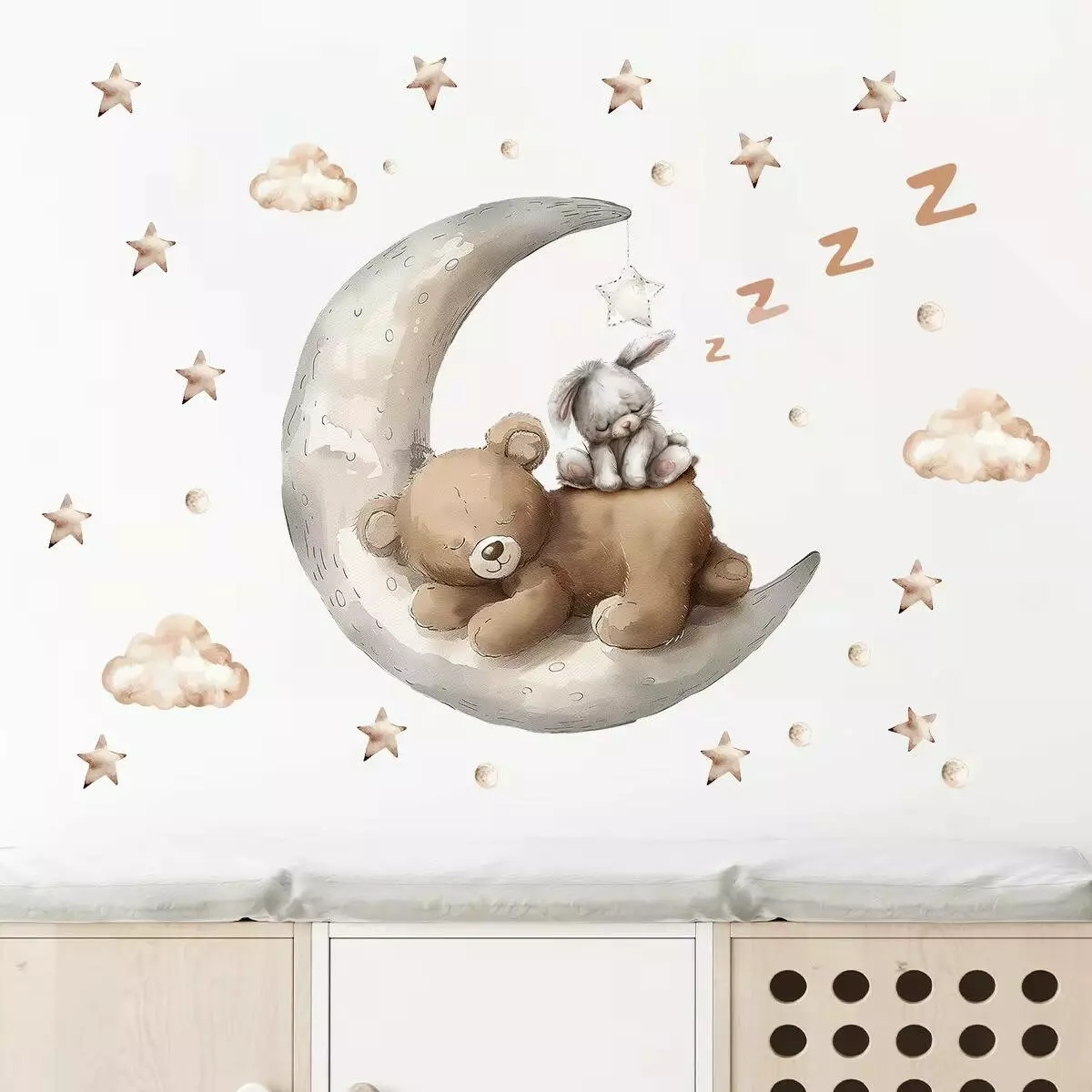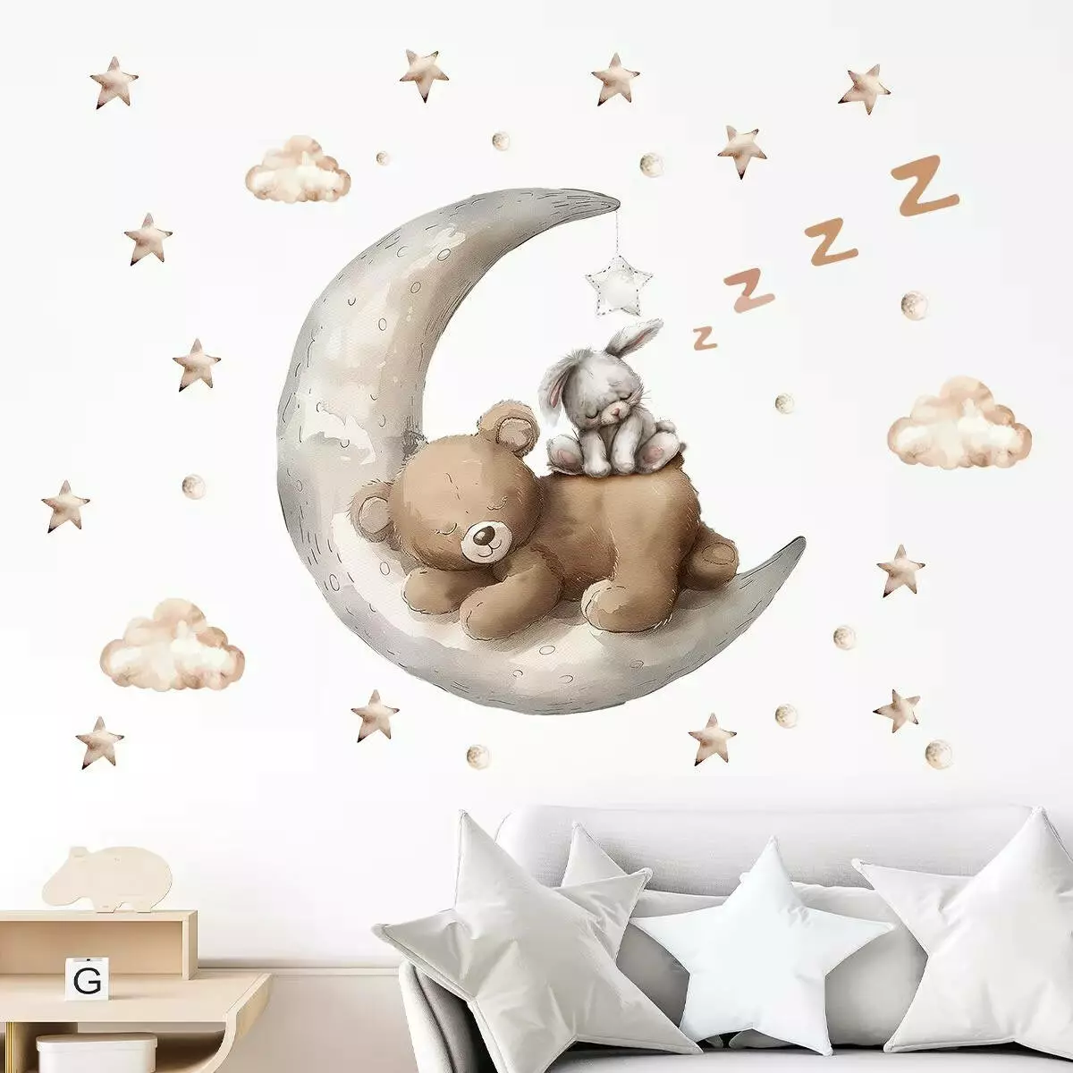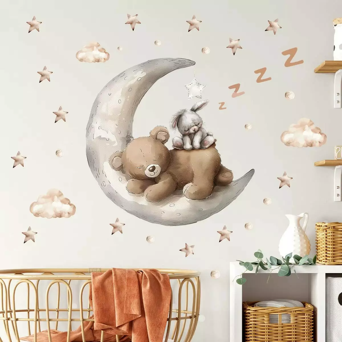 Наклейка виниловая "Мишка с зайчиком на Луне" – это прекрасное