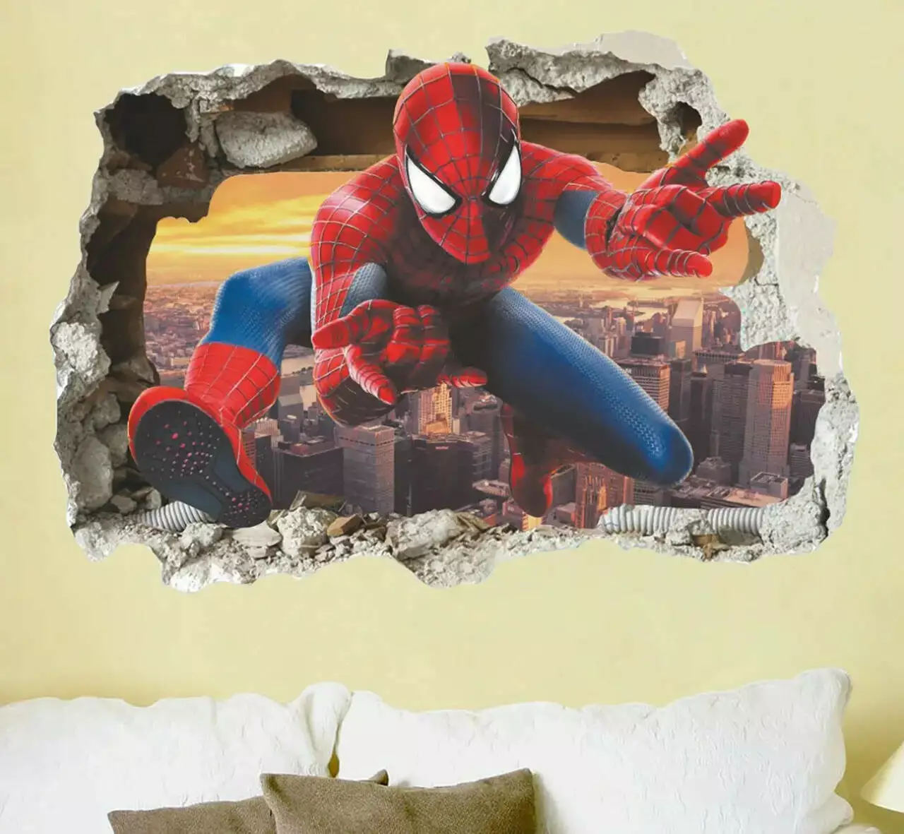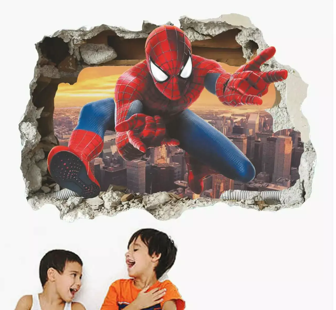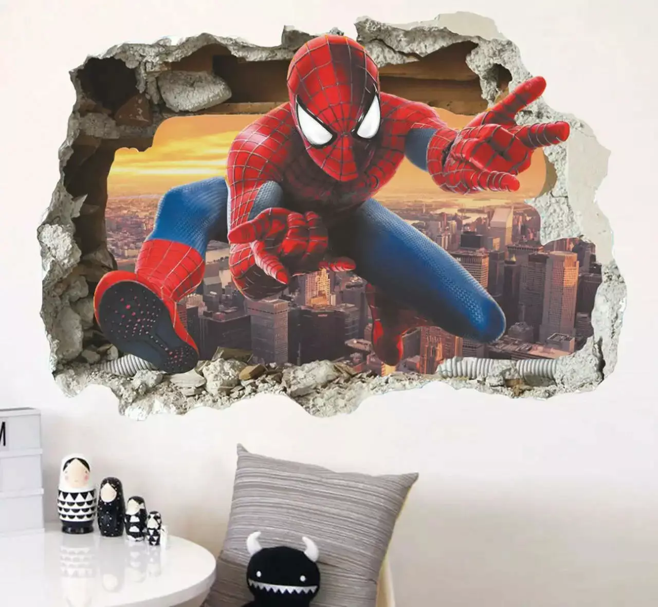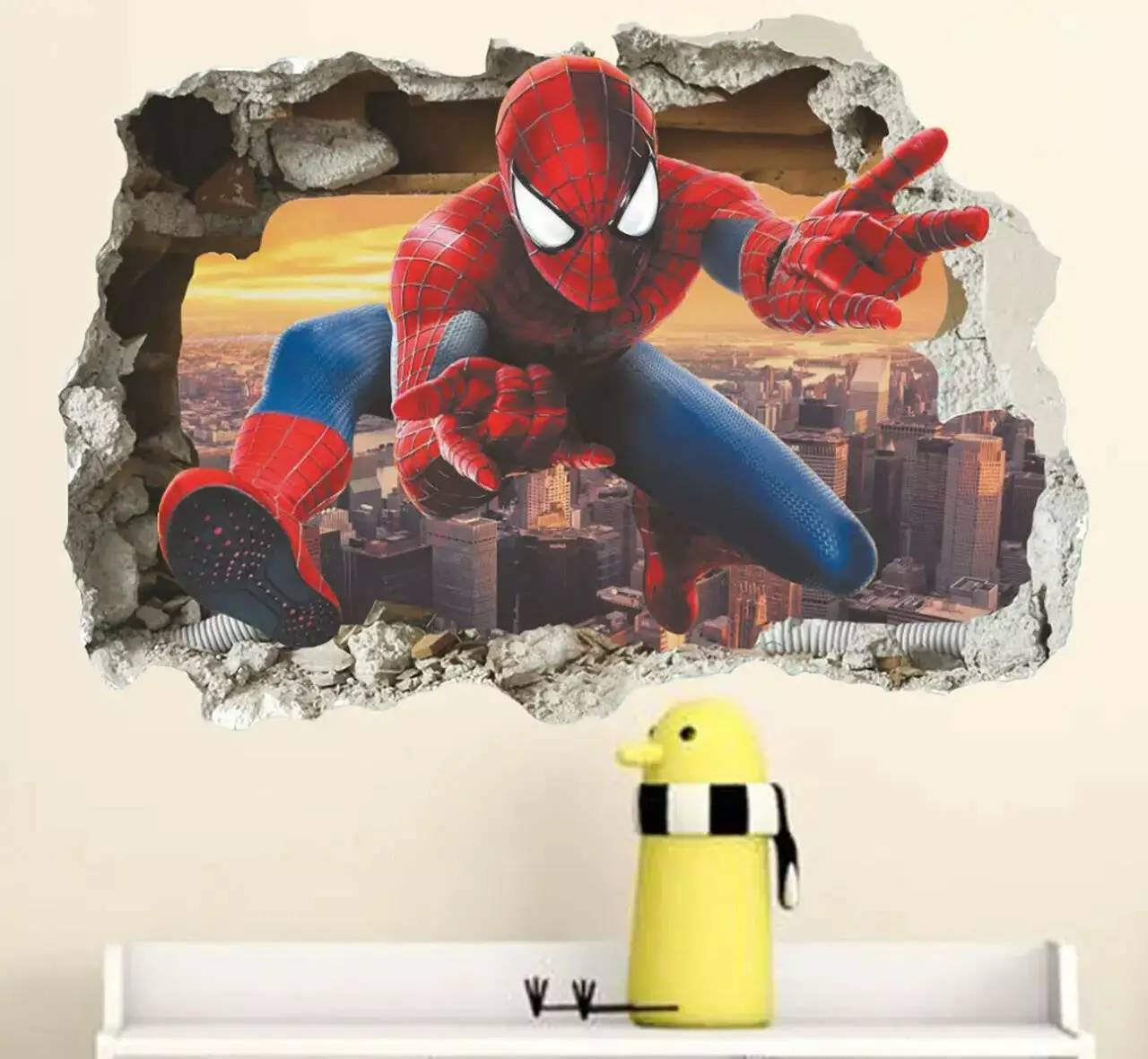 наклейкою «Людина-Павук». Ефектна 3D ілюзія розбитої стіни, з якої