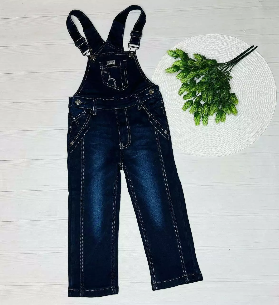 Напівкомбінезон утеплений хлоп. Синій джинси утеплені флісом 7218 YUKE
