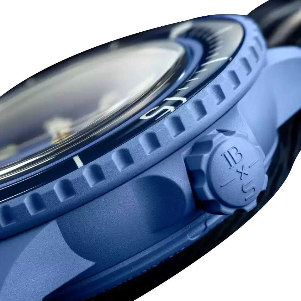Глубокие и насыщенные оттенки синего в модели ATLANTIC OCEAN напоминают бурные штормовые волны Атлантического океана. Своей расцветкой эти часы с корпусом из биокерамики, градиентным циферблатом, указателем даты между отметками 4 и 5 часов и ремешком NATO, произведенным из переработанных рыболовных сетей, обязаны атлантическому глаукусу (Glaucus Atlanticus).