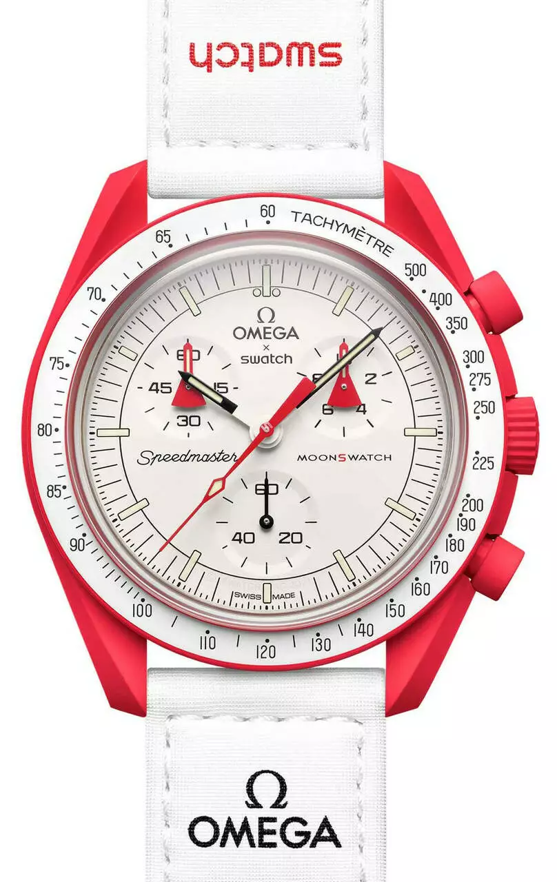 Дизайн каждой модели часов вдохновлен планетой или небесным телом в Солнечной системе. На всех циферблатах счетчики расположены так же, как в классических хронографах Swatch. Они используют тот же кварцевый калибр, что позволяет расположить стрелки таким образом. Что выводит эту коллекцию на орбиту, так это сочетание инновационного материала Swatch BIOCERAMIC с ключевыми элементами дизайна OMEGA Speedmaster Moonwatch. Водонепроницаемость в этом случае составляет 3 бара или 30 метров. Это означает, что фактическая водостойкость позволяет противостоять брызгам при мытье рук. Ремешок на липучке очень удобен и идеально подходит для ежедневного ношения.