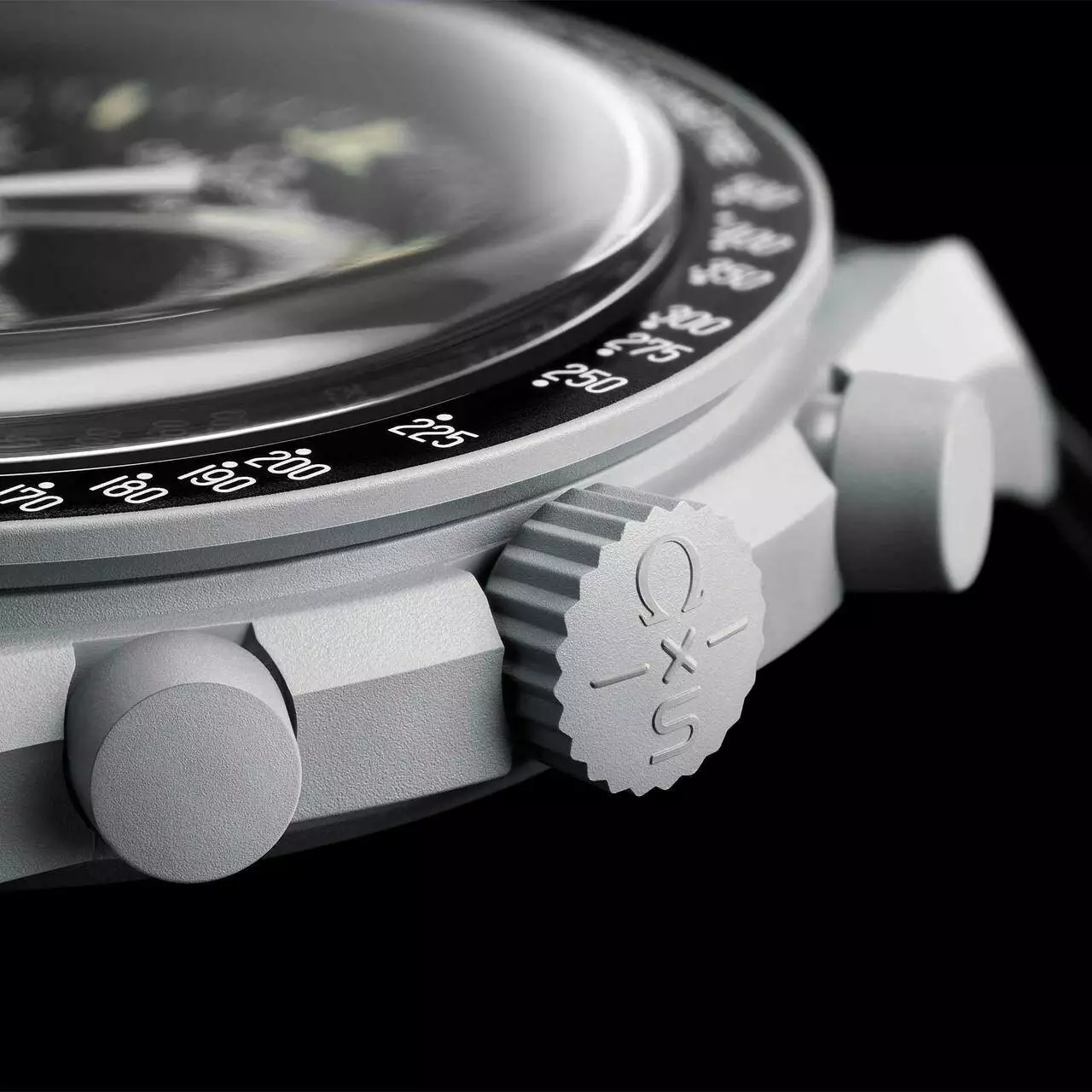 Дизайн каждой модели часов вдохновлен планетой или небесным телом в Солнечной системе. На всех циферблатах счетчики расположены так же, как в классических хронографах Swatch. Они используют тот же кварцевый калибр, что позволяет расположить стрелки таким образом. Что выводит эту коллекцию на орбиту, так это сочетание инновационного материала Swatch BIOCERAMIC с ключевыми элементами дизайна OMEGA Speedmaster Moonwatch. Водонепроницаемость в этом случае составляет 3 бара или 30 метров. Это означает, что фактическая водостойкость позволяет противостоять брызгам при мытье рук. Ремешок на липучке очень удобен и идеально подходит для ежедневного ношения.