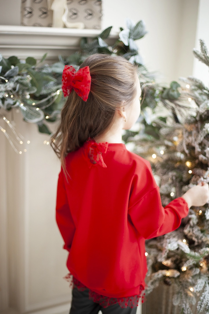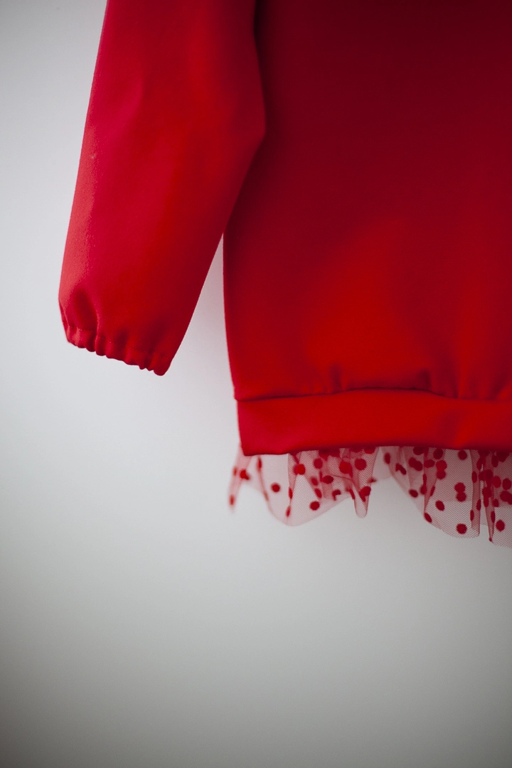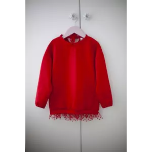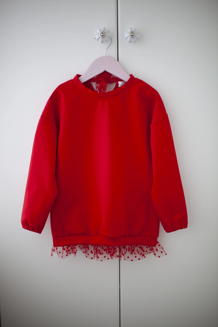 Нарядный свитшот для девочки,выполнен из полированной трехнитки, на шее завязывается на красивый бантик из мягкой сеточки, внизу кофточки красивая сборочка из сеточки в цвет изделия.