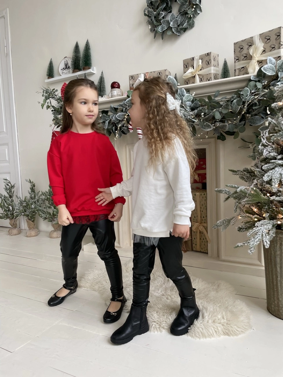 Свитшок прекрасно сочетается с кожаными лосинами и пышными юбочками из нашей колекции.