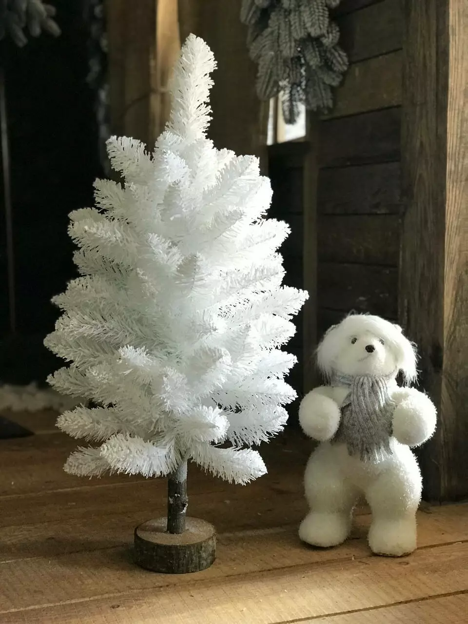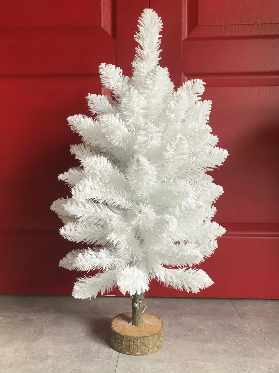 Стильна біла ялинка HVOYA Elegant на пні висотою 65 см допоможе створити оригінальний і креативний дизайн святкового інтер'єру.