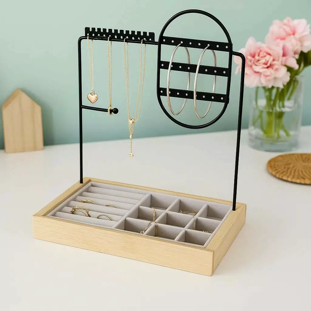 Органайзер для прикрас із дерев'яною основою та металевою стійкою —