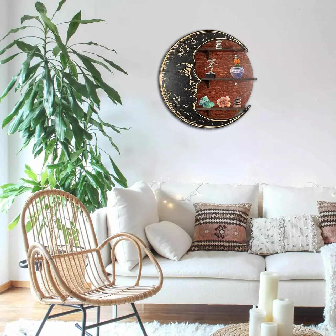Настінна полиця у формі місяця виготовлена з дерева буде стильною