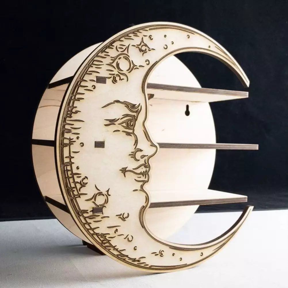 Настінна полиця у формі місяця виготовлена з дерева буде стильною
