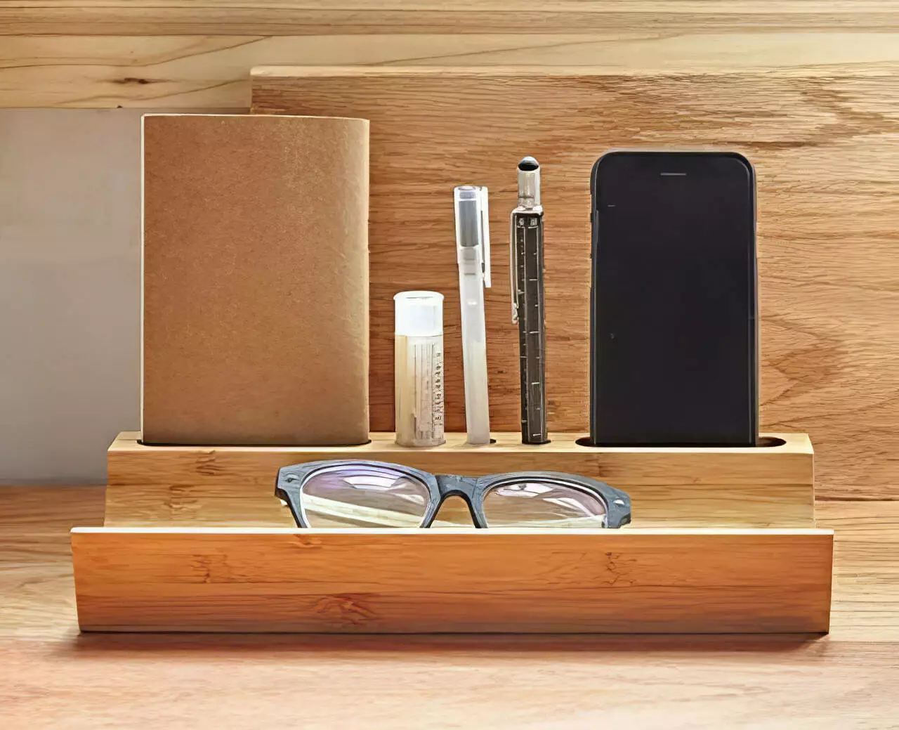 Функциональный настольный органайзер из натурального бамбука — это