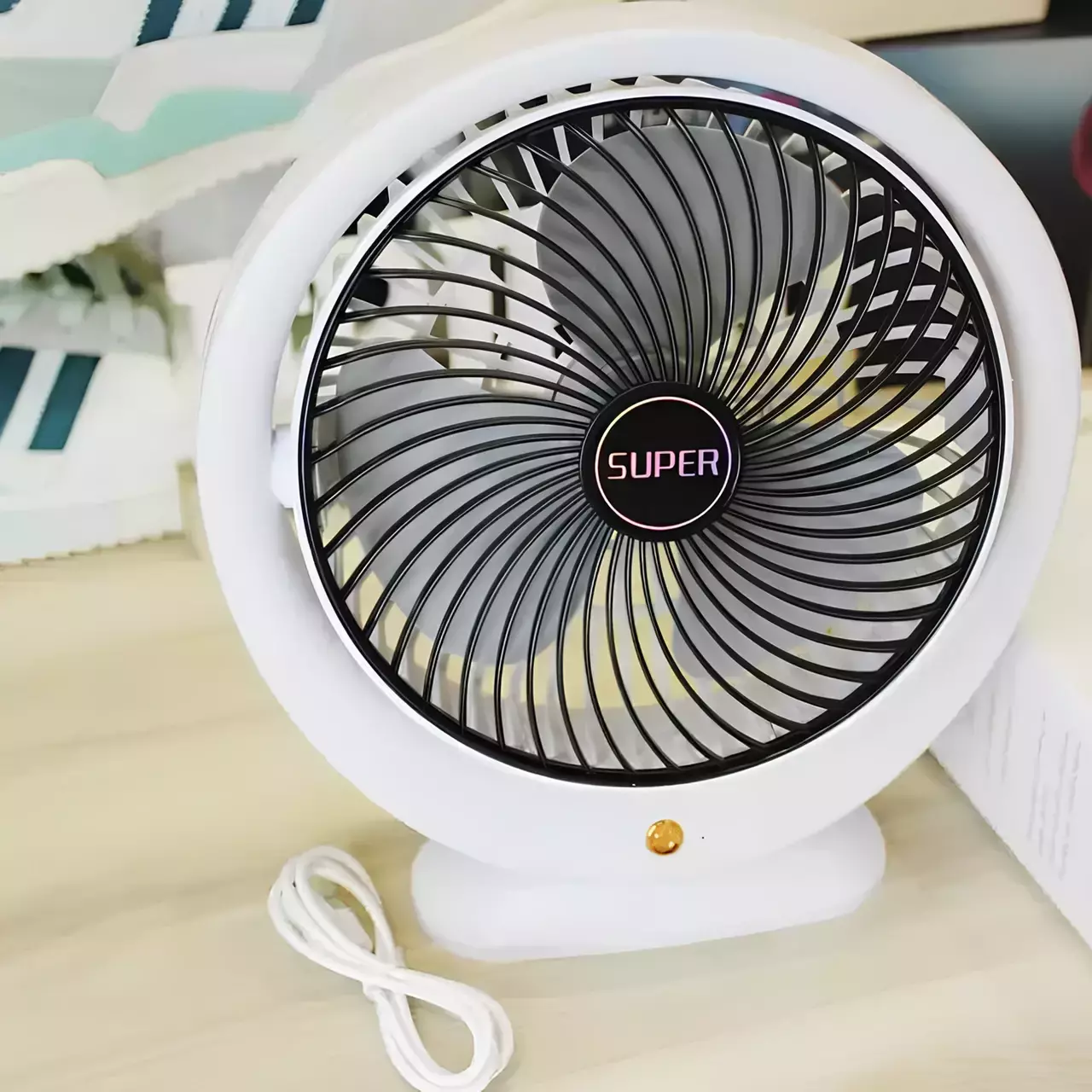 Этот настольный вентилятор станет вашим незаменимым помощником в жаркие дни, обеспечивая Вам комфорт и стиль!