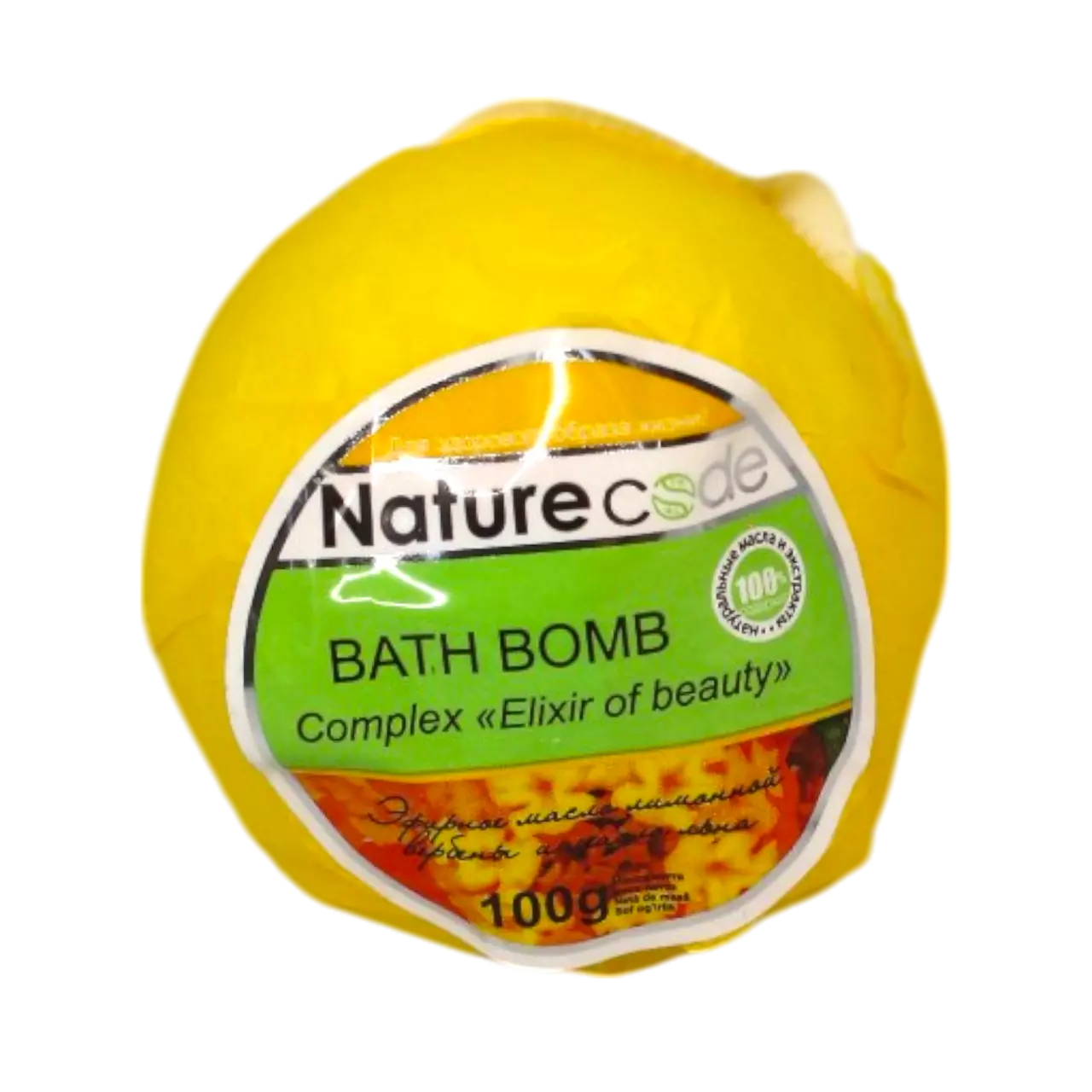 Nature Code Бомбочка для ванни Elixir of Beauty Жовта 100 г — це
